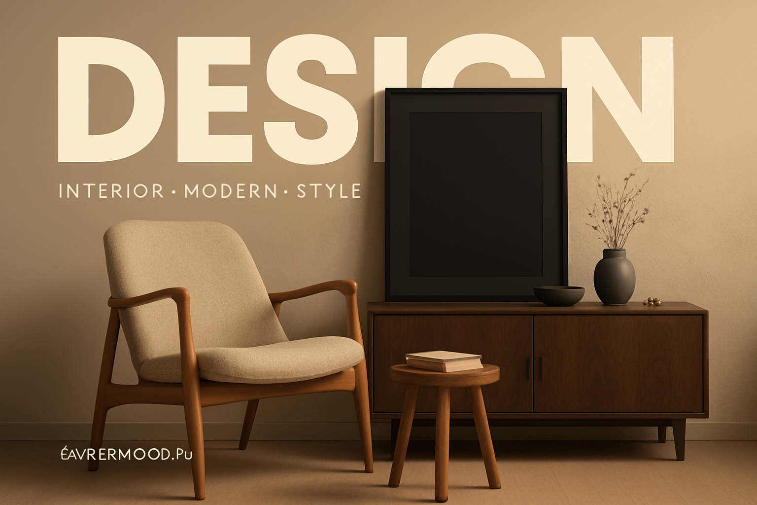 /Collection: /by davooda/Type: PNG/A stylish Scandinavian living room featuring a design armchair, black poster frame, wooden commode, and decorative accessories. The bold typography enhances the modern aesthetic.