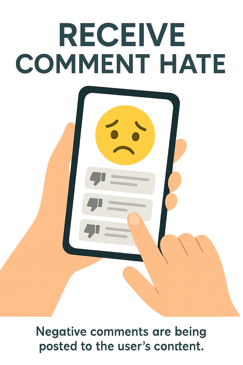 /Collection: /by davooda/Type: PNG/Illustration depicting a smartphone displaying negative comments, designed to highlight social media interactions. Ideal for discussions on online behavior and engagement.