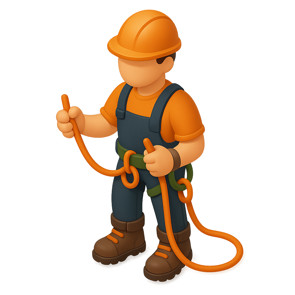 3D Arborist Icon in Climbing Gear with Rope
