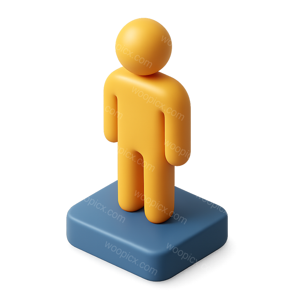/Premium/Collection: /by davooda/Type: PNG/This image features a stylized 3D figure in a three-quarter view, standing on a square base. The figure is bright yellow against a softly illuminated background, creating a volumetric feel.