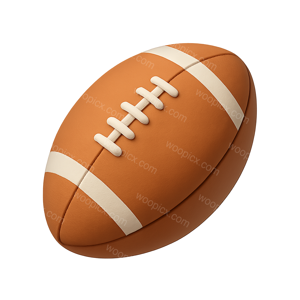 A detailed 3D icon of a rugby ball, featuring realistic textures and laces. The ball is predominantly orange with white stripes, showcasing a modern design.