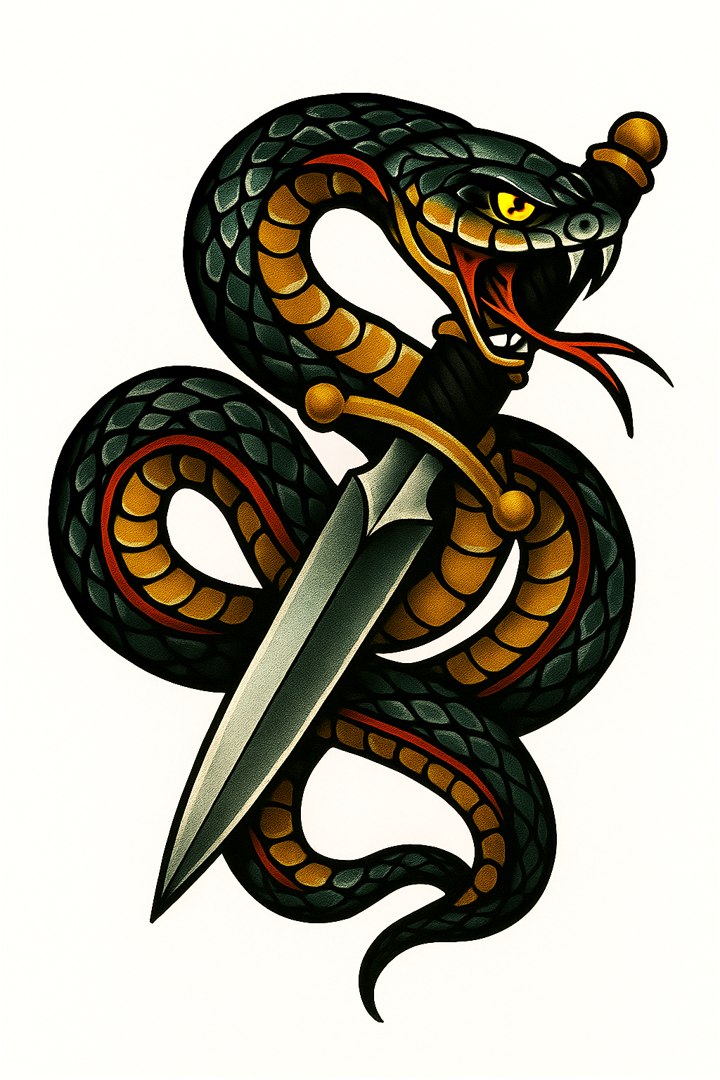 Stylized Snake and Dagger Illustration for Tattoo Art