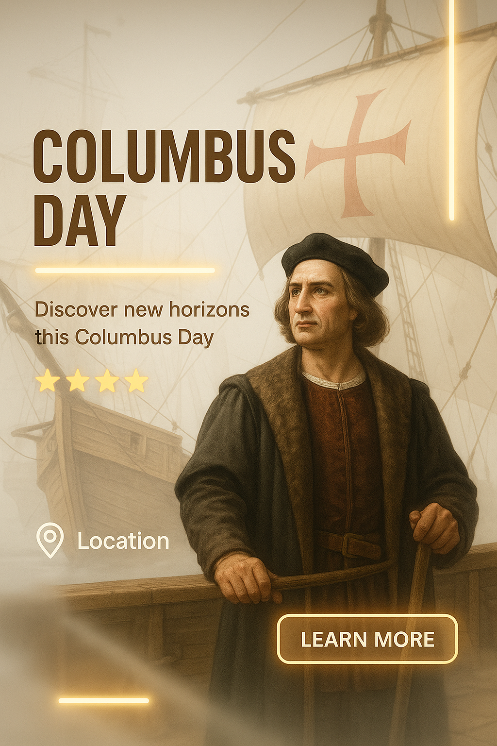 Columbus Day Promotional Graphic Featuring Historical Imagery