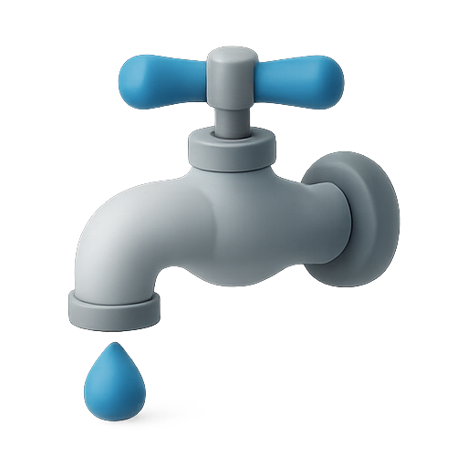 A modern and simplistic illustration of a faucet with a blue handle, featuring a single droplet of water. Ideal for plumbing, home improvement, or water conservation themes.