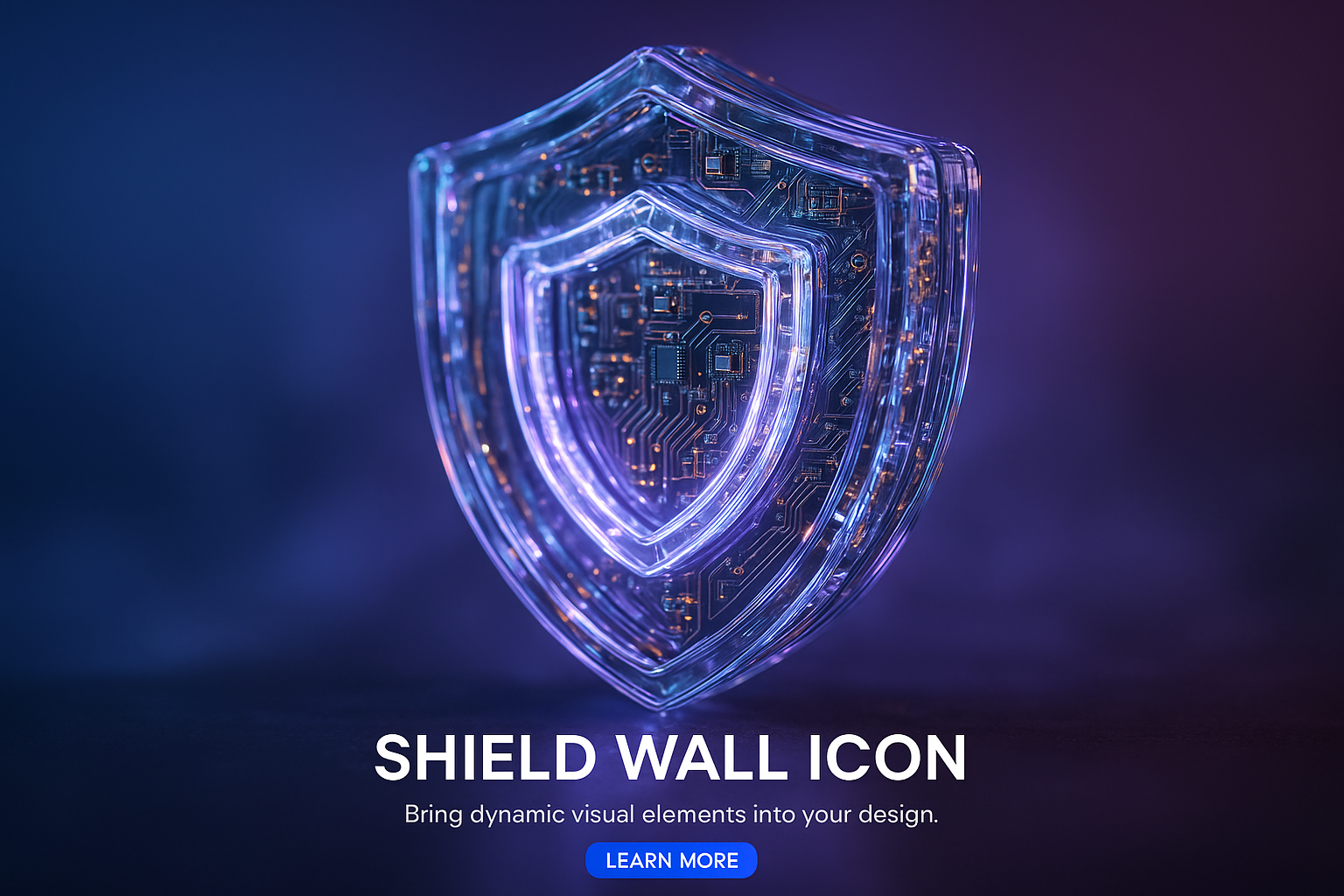 Hyperrealistic Shield Wall Icon with Glowing Elements