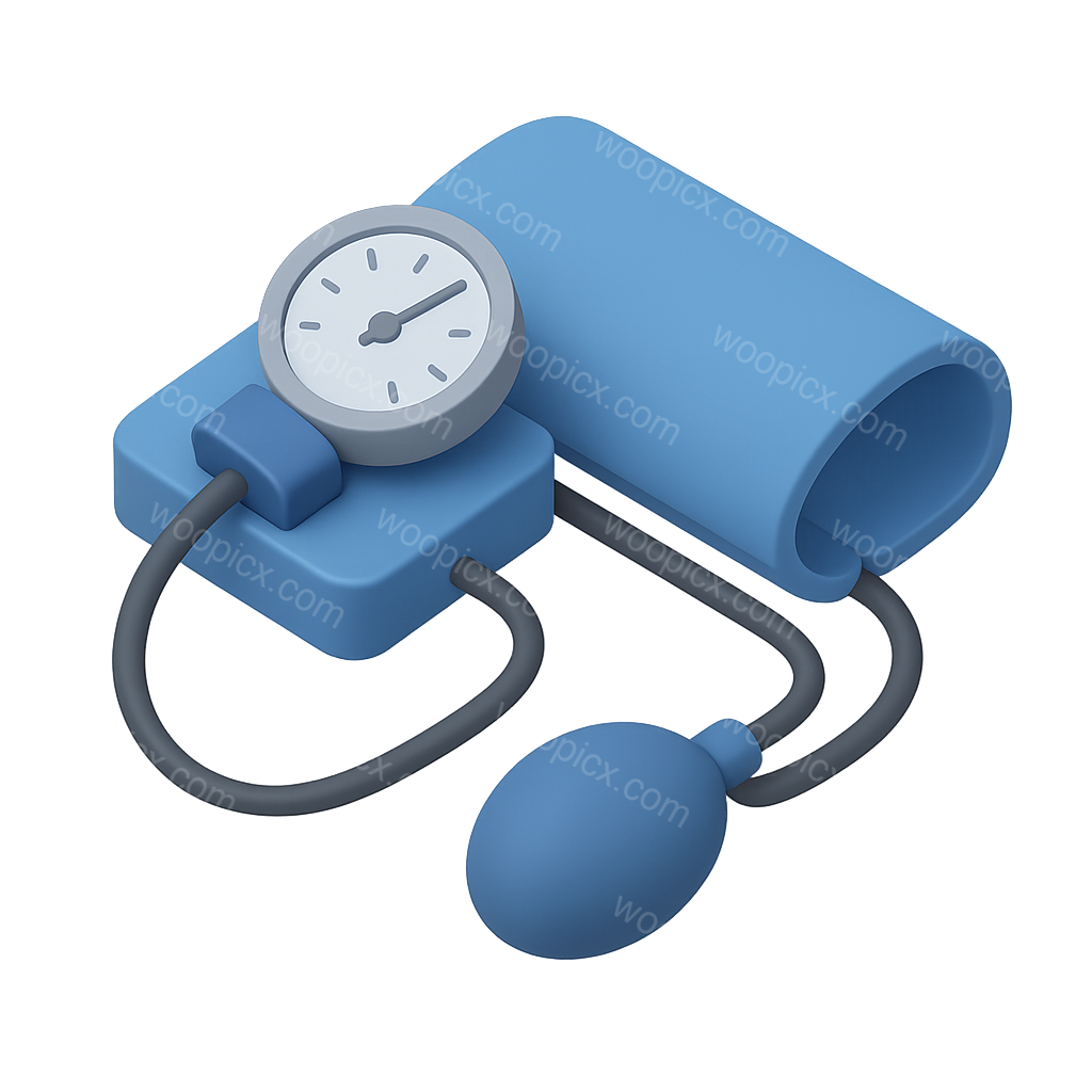 /Collection: /by davooda/Type: PNG/A sleek 3D representation of a blood pressure cuff featuring a gauge and bulb. The design showcases a three-quarter view with a transparent background, emphasizing its volumetric and isometric qualities.