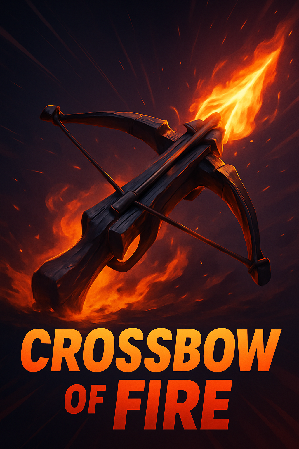 Dynamic Fire Crossbow Illustration with Bold Typography