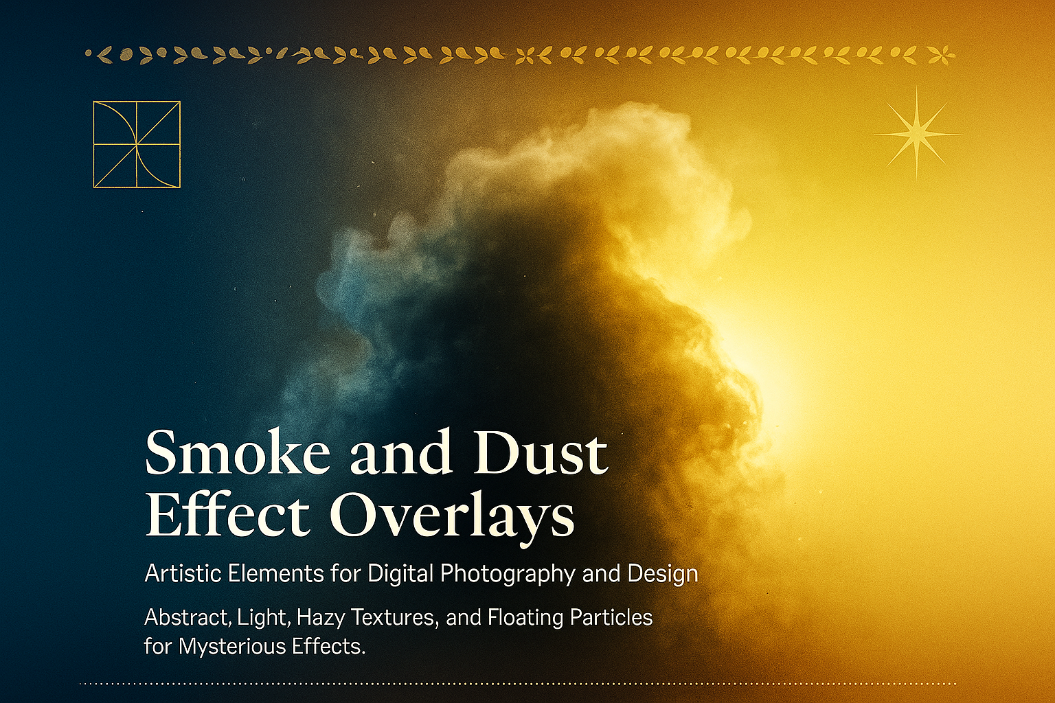 /Collection: /by davooda/Type: PNG/An abstract composition showcasing smoke and dust overlays, enhanced by backlighting. The design features a gradient background with floating particles, creating a mysterious atmosphere.