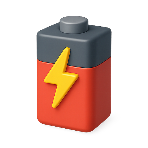 A modern 3D illustration of a battery icon featuring a lightning bolt symbol, perfect for tech-related graphics, websites, or mobile applications.