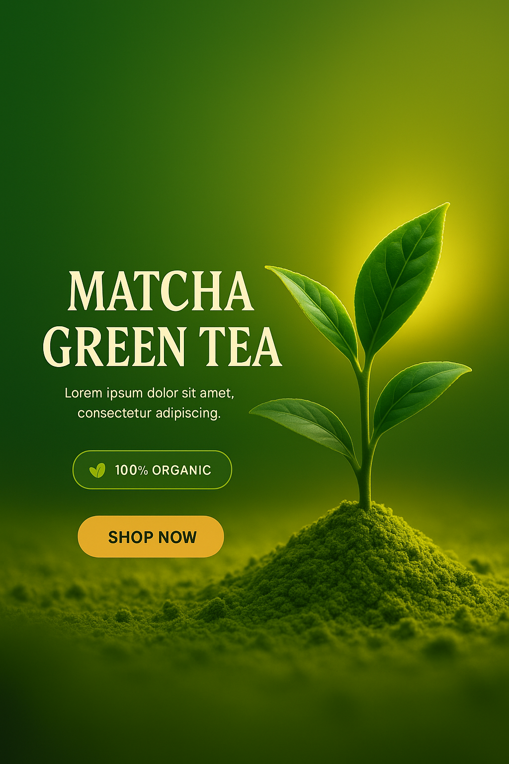 Promotional Graphic for Matcha Tea with Elegant Presentation