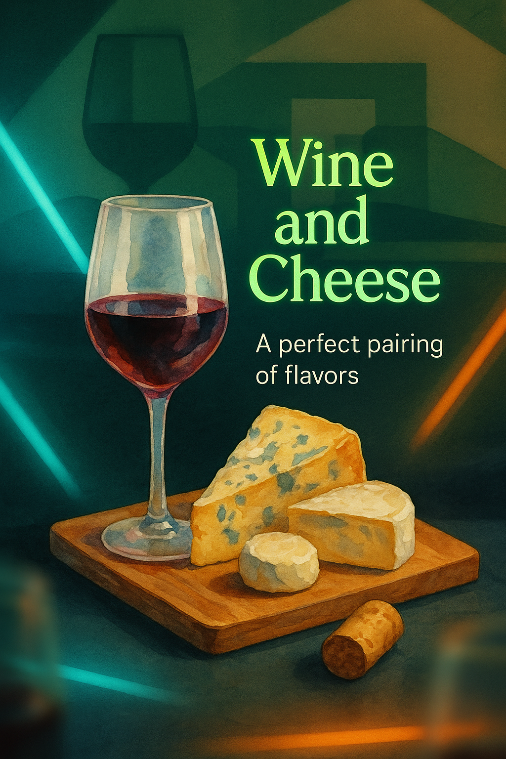 Artistic Illustration of Wine and Cheese Pairing