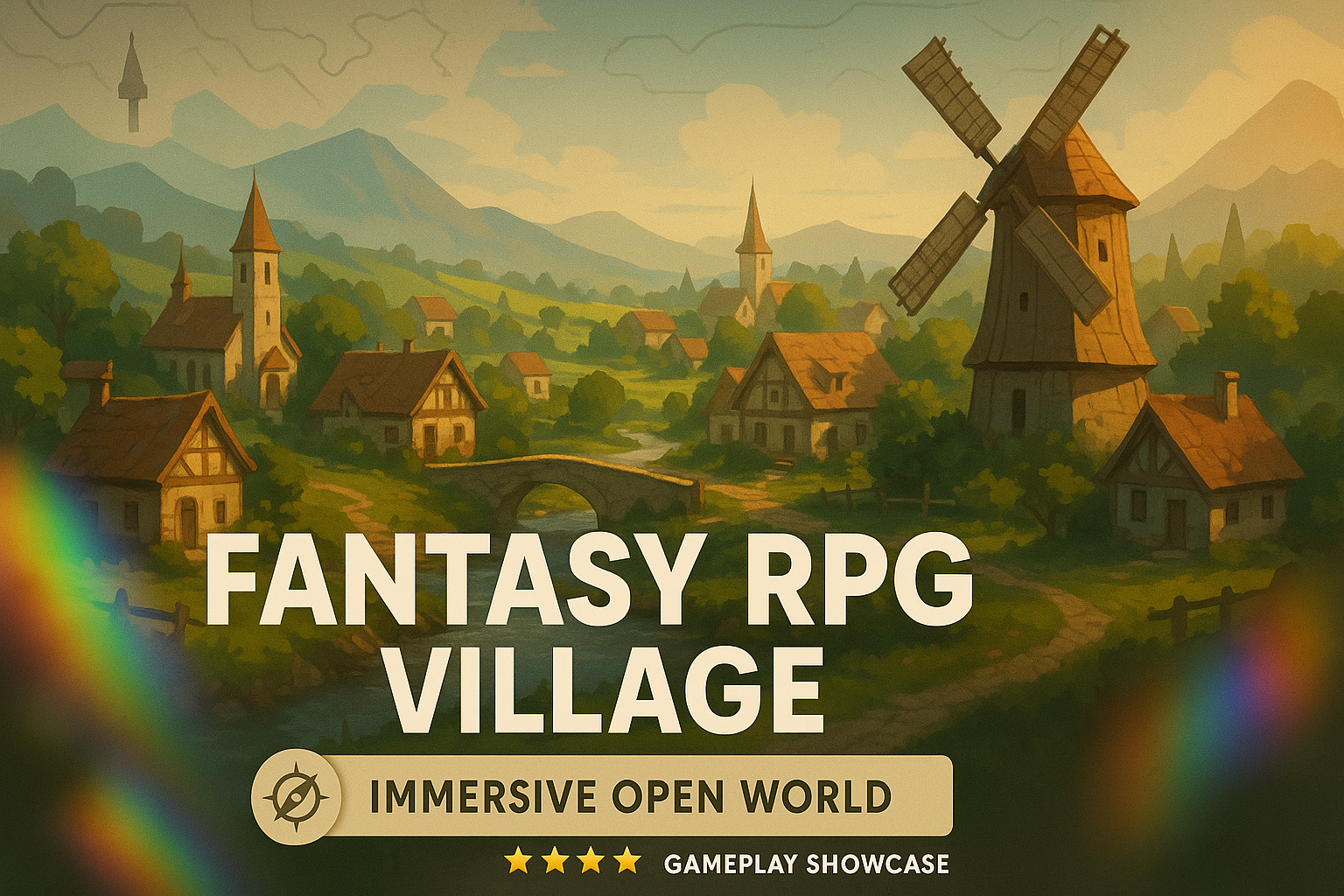 Fantasy RPG Village Concept Art with Scenic Landscape