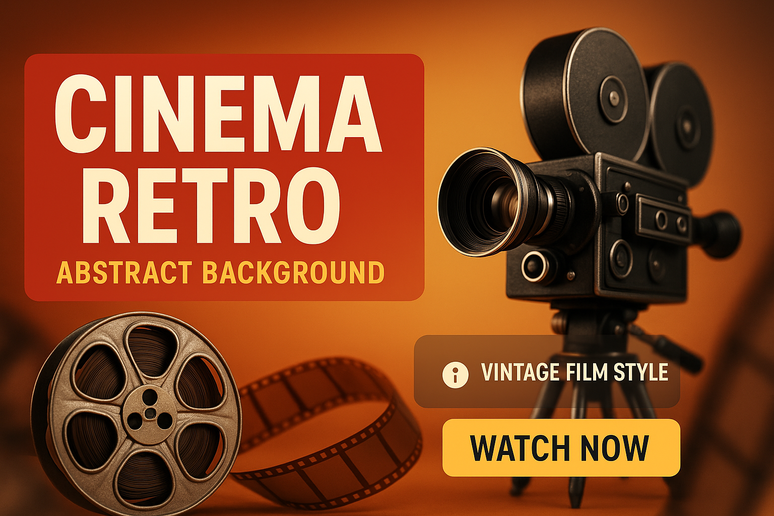 /Collection: /by davooda/Type: PNG/An abstract background featuring a vintage film camera and film reel, ideal for promoting cinema-related content. Perfect for social media posts, video thumbnails, and promotional materials.