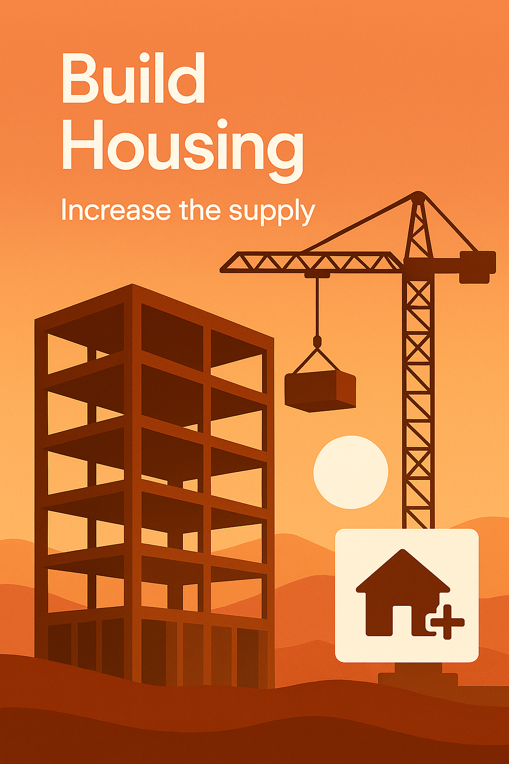 /Collection: /by davooda/Type: PNG/Illustrative graphic showcasing a construction site with a crane and building, designed to promote housing supply. The warm color palette and minimalistic style appeal to urban planners and real estate developers.