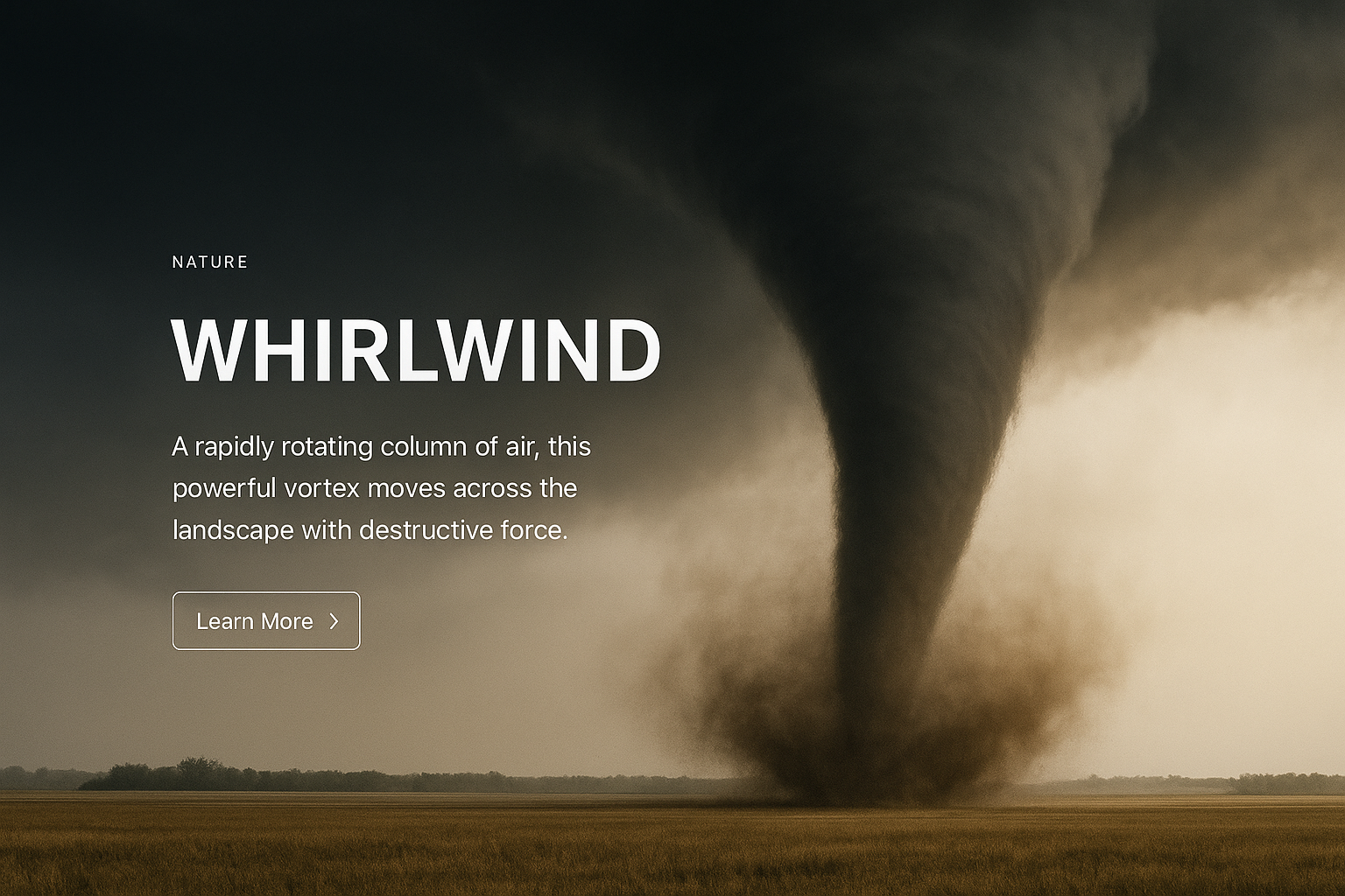 A striking representation of a whirlwind captured in a realistic style. The image features a dramatic tornado over a vast landscape, emphasizing the force of nature.