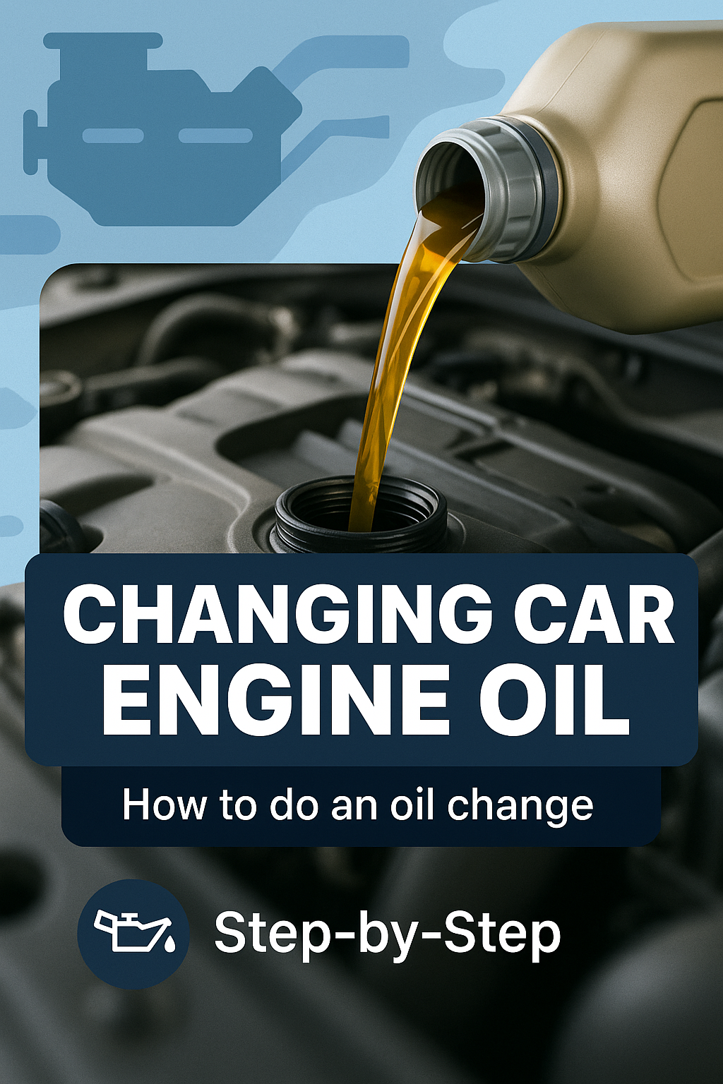 /Collection: /by davooda/Type: PNG/Step-by-step instructional graphic illustrating the oil change process for car engines, featuring clear visuals and a modern design suitable for automotive enthusiasts.