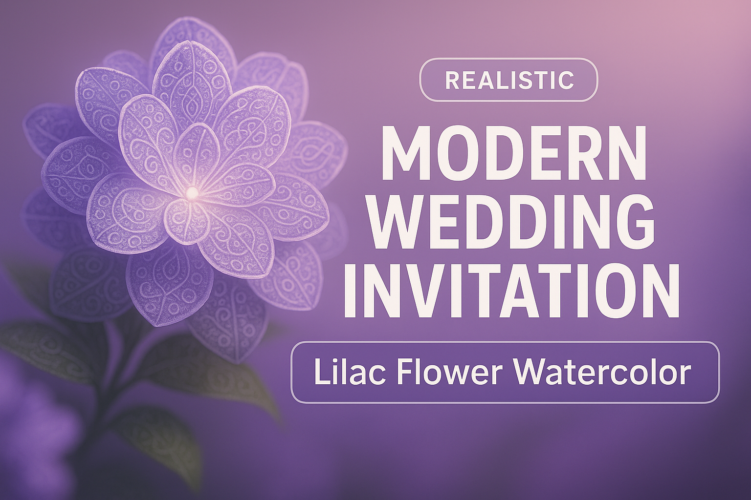 /Collection: /by davooda/Type: PNG/Stylish wedding invitation graphic showcasing a lilac flower in watercolor style, perfect for modern weddings. Features soft hues and a contemporary layout.