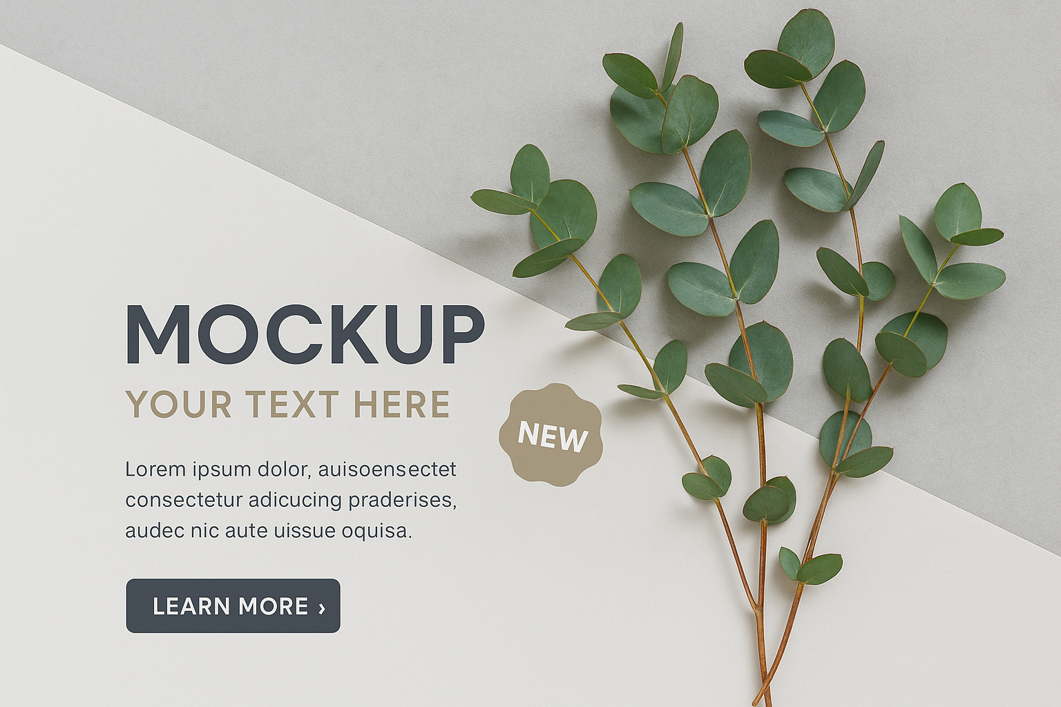 Eucalyptus Mockup on Pastel Gray Background with Text Elements
