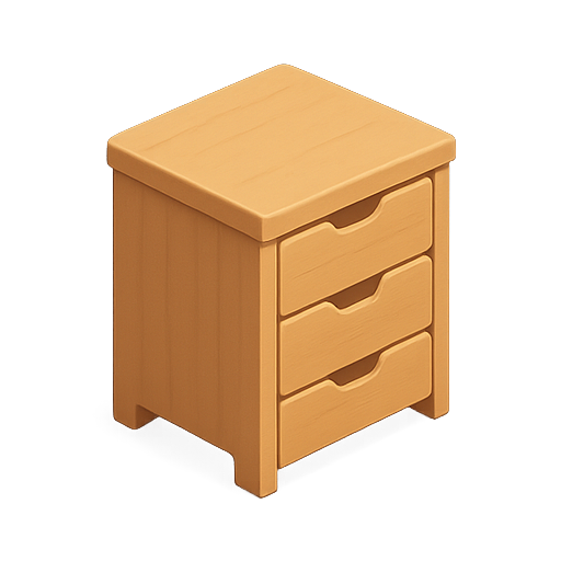 A digital illustration of a wooden nightstand featuring three drawers, ideal for home decor visuals or furniture design concepts.
