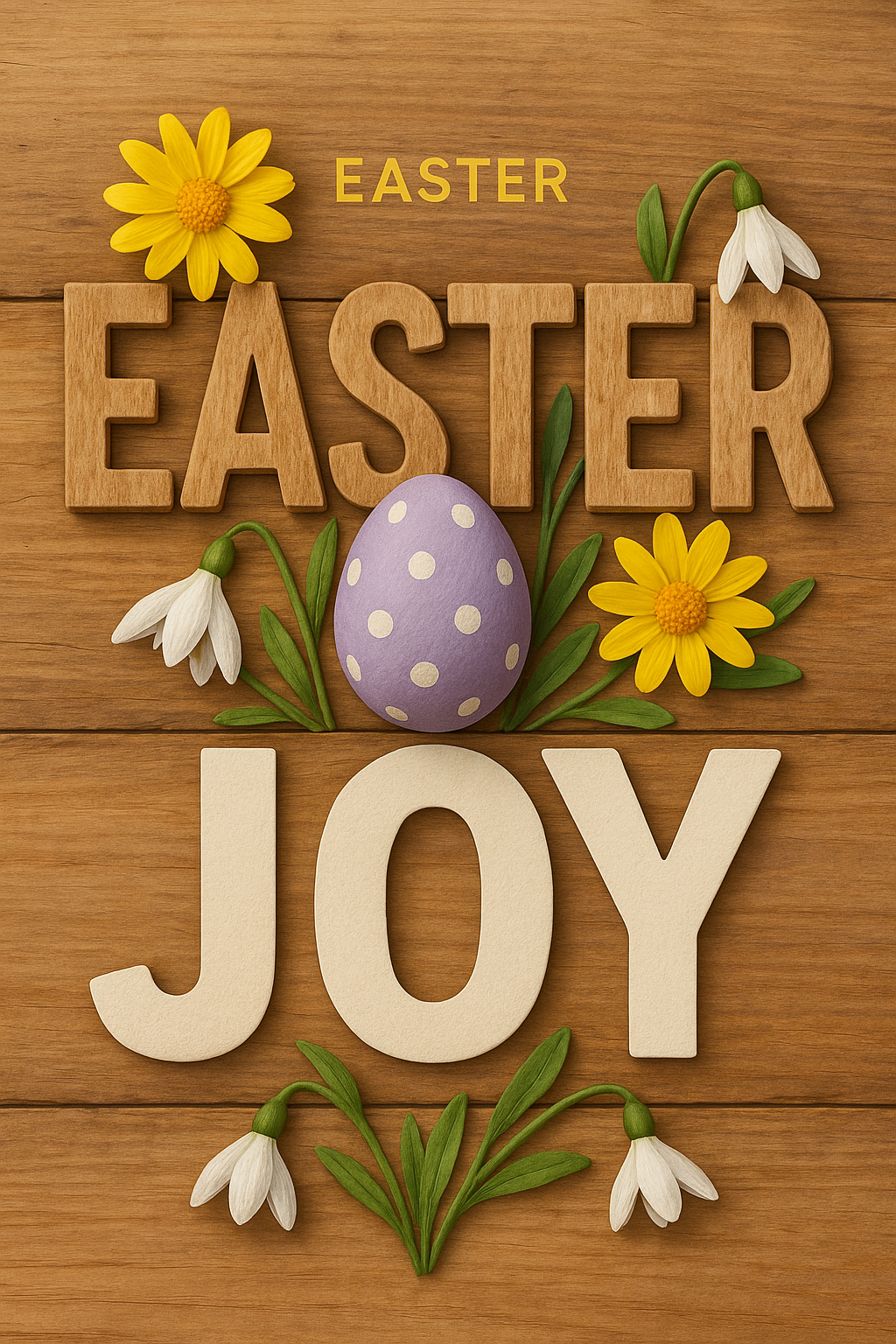 Vibrant Easter-themed graphic featuring playful typography and decorative flowers, perfect for seasonal promotions or social media posts celebrating spring festivities.