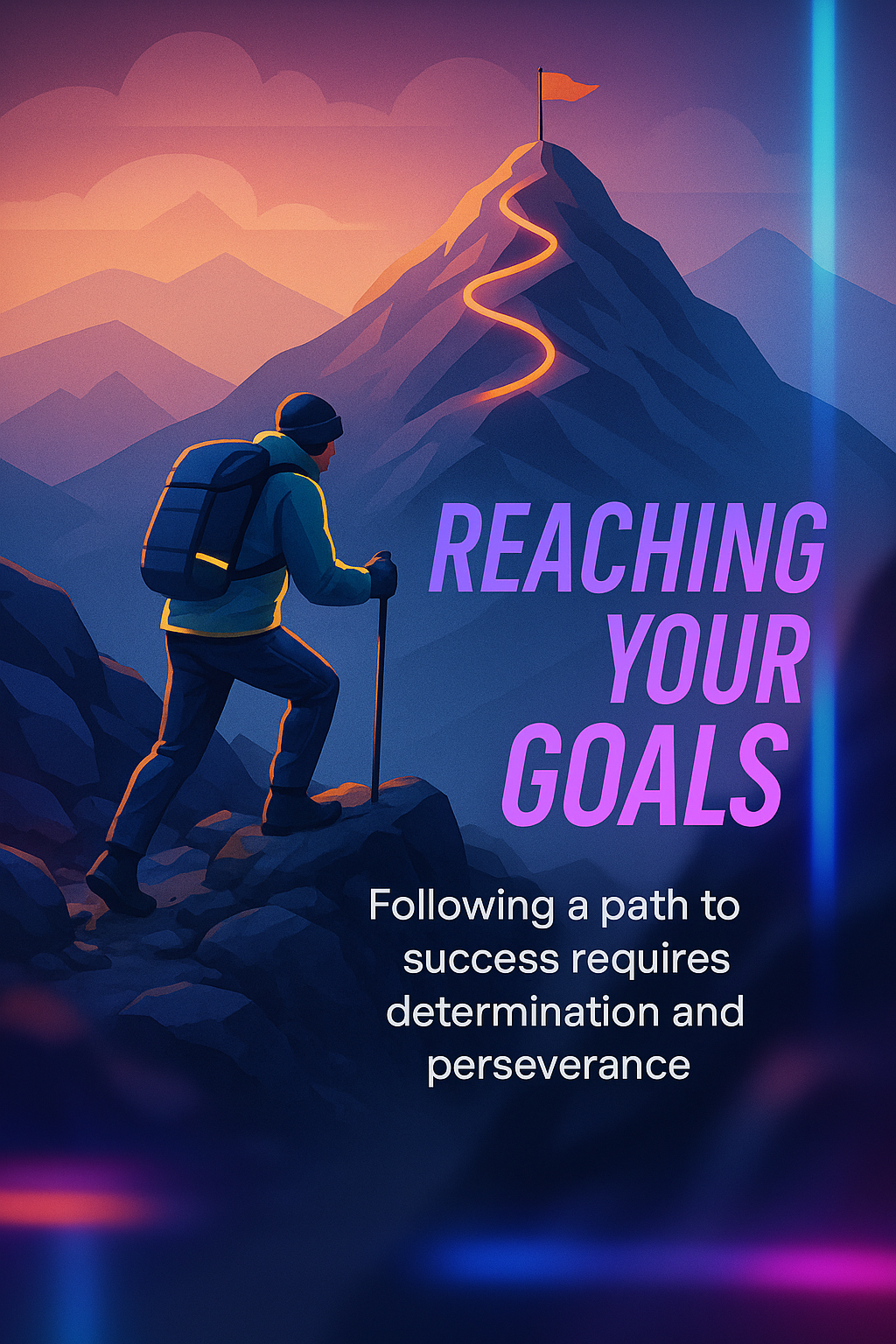 /Collection: /by davooda/Type: PNG/Dynamic illustration depicting a hiker ascending a mountain path, symbolizing the journey towards achieving goals. The vibrant colors and modern design evoke a sense of determination and aspiration, ideal for motivational content.