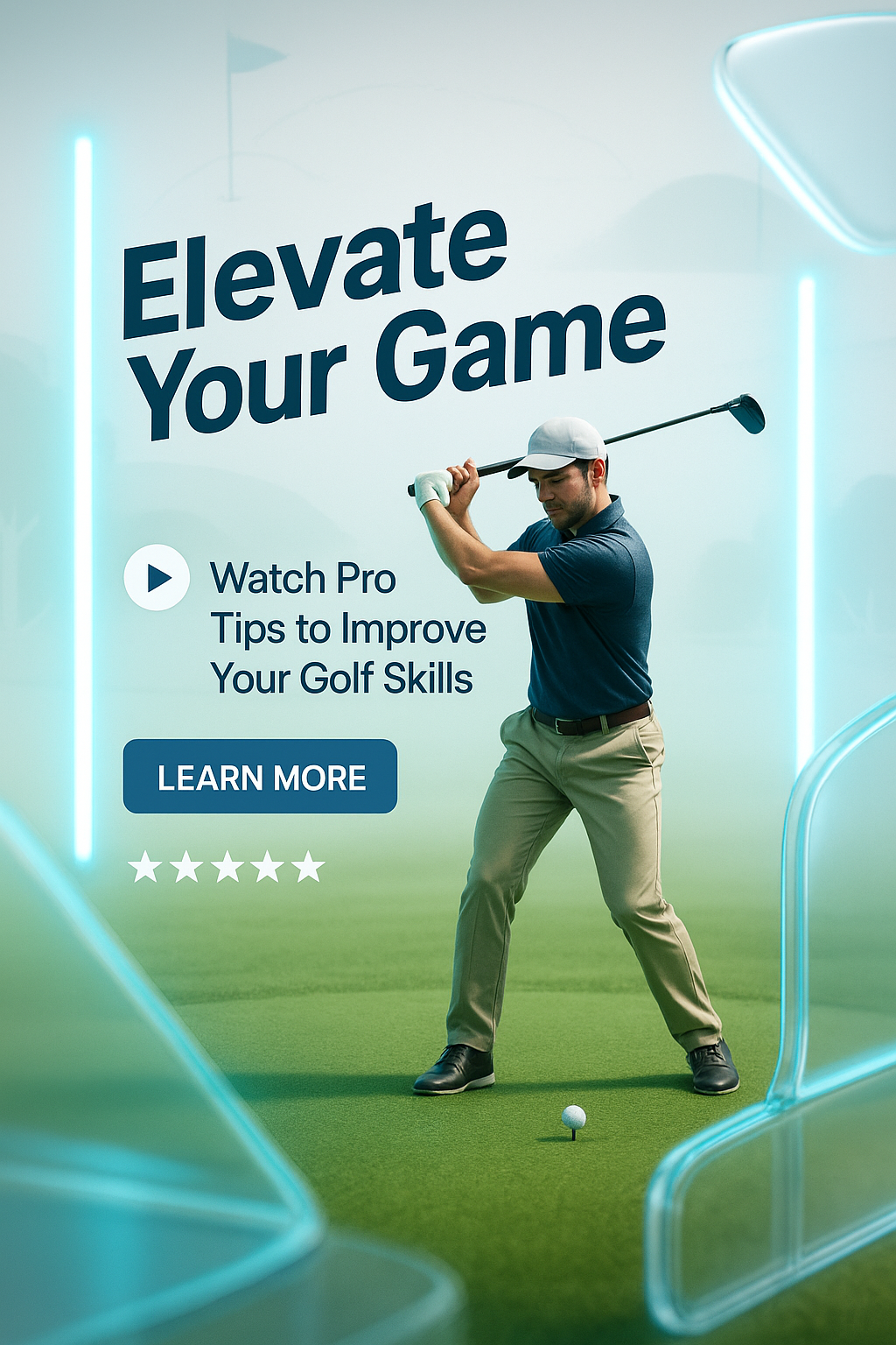 /Collection: /by davooda/Type: PNG/Engaging promotional banner featuring a golfer in action, designed to encourage viewers to learn pro tips for enhancing their golf skills. Ideal for sports marketing and online courses.