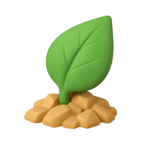 Stylized 3D graphic depicting a green leaf emerging from a mound of soil, symbolizing growth and nature. Ideal for eco-friendly themes and sustainability projects.