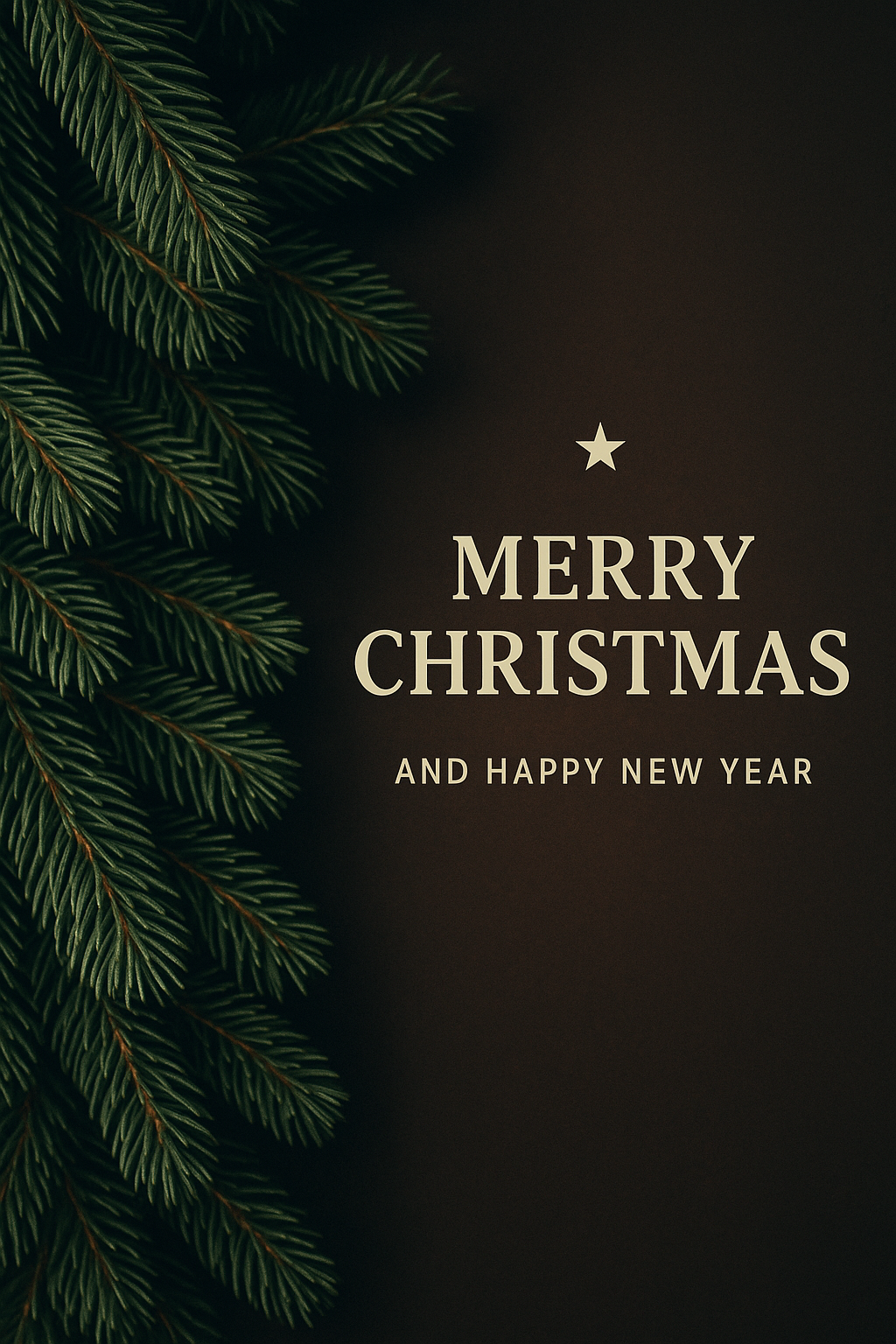 Stylish holiday greeting card design featuring a pine branch and elegant typography, ideal for seasonal promotions and festive messages.