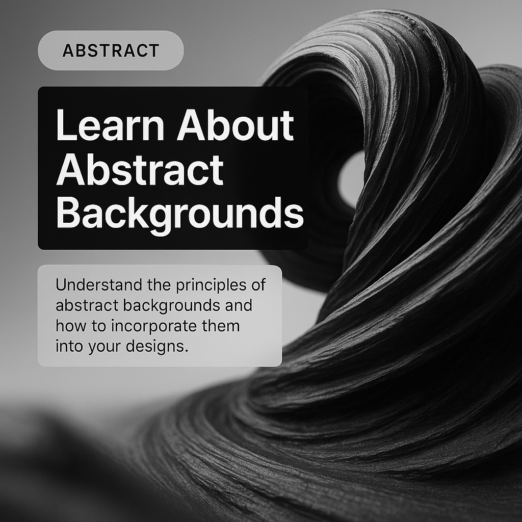 /Collection: /by davooda/Type: PNG/A visually appealing graphic aimed at educating designers about abstract backgrounds, featuring a modern black and white design that blends text with artistic imagery.