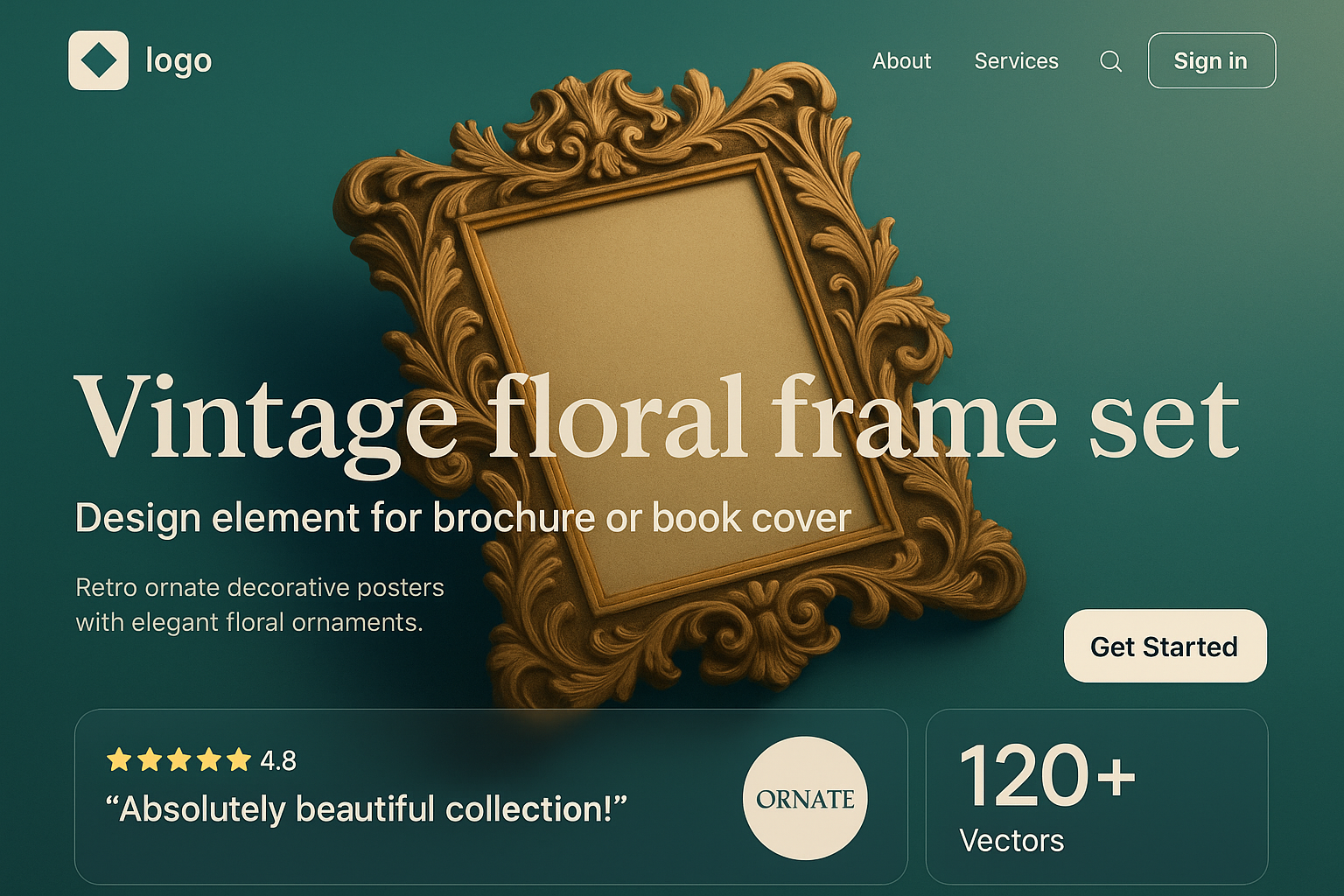 /Collection: /by davooda/Type: PNG/A visually engaging landing page design featuring a vintage floral frame, elegant typography, and a clear call to action. The layout is vibrant and balanced, emphasizing professionalism.