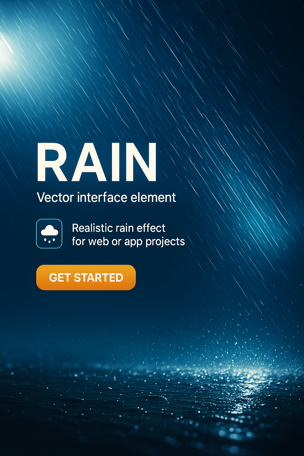 This image features a vector graphic depicting a rain effect, ideal for web and app interface projects. The design uses a dark color palette with blue tones, creating a moody atmosphere.