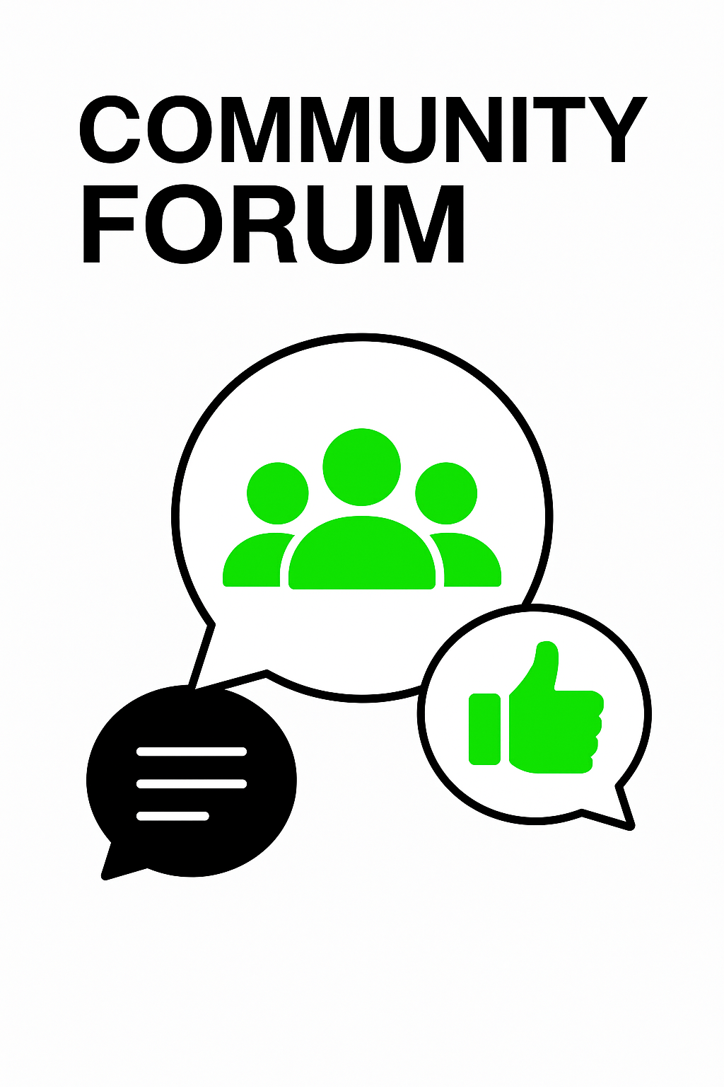 Modern graphic featuring chat bubbles and community icons, ideal for promoting online discussion platforms or community engagement. Simple yet effective design.