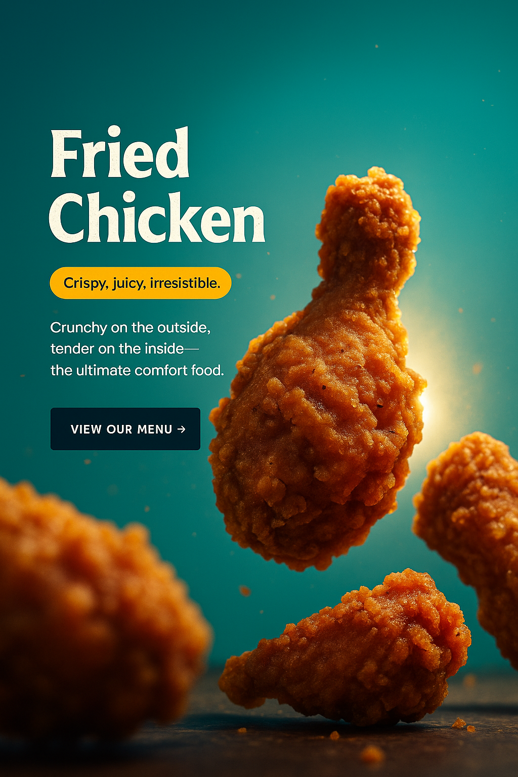 Realistic Fried Chicken Presentation with Dynamic Composition