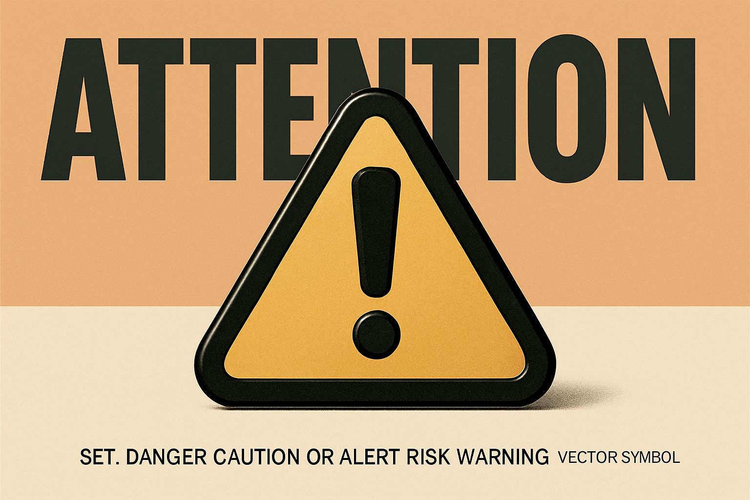 /Collection: /by davooda/Type: PNG/A bold and modern warning symbol art featuring a hyper-realistic caution sign with an exclamation mark. The design includes oversized text 'ATTENTION' and a minimalistic color-block background, creating a stylish and balanced layout.