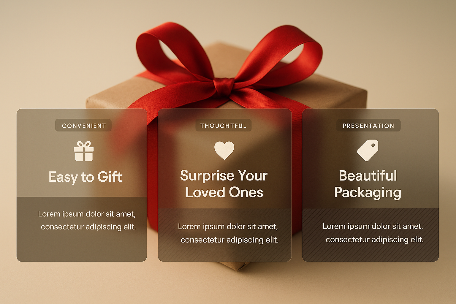 /Collection: /by davooda/Type: PNG/A visually appealing web design featuring three blocks. Each block has a title, icon, and text, presented with a soft gradient background and a prominent red ribbon.
