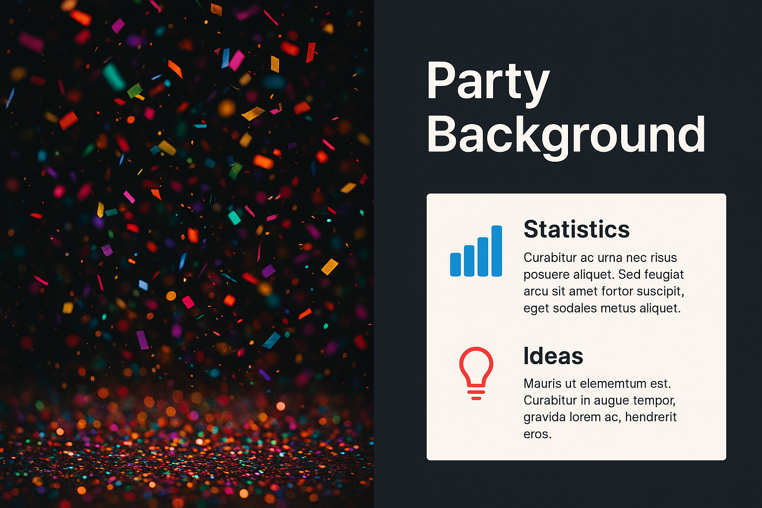 /Collection: /by davooda/Type: PNG/Colorful party-themed background featuring a confetti-like motif, accompanied by a statistics and ideas section, ideal for event promotions or presentations.