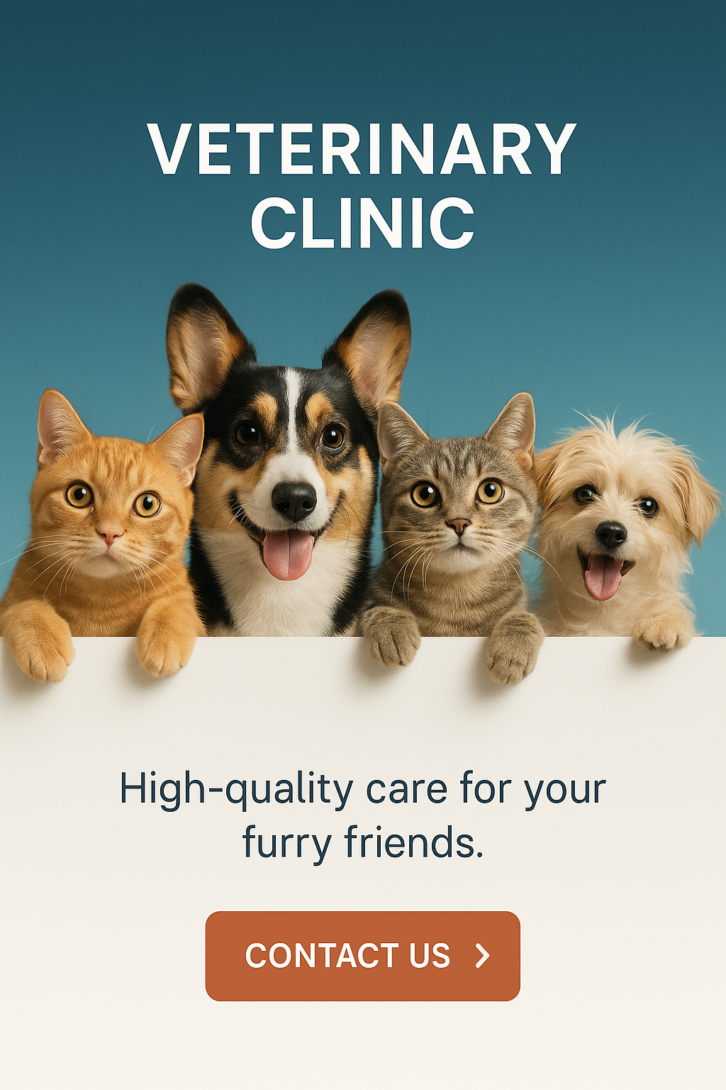 Friendly Veterinary Clinic Promotional Graphic Featuring Pets
