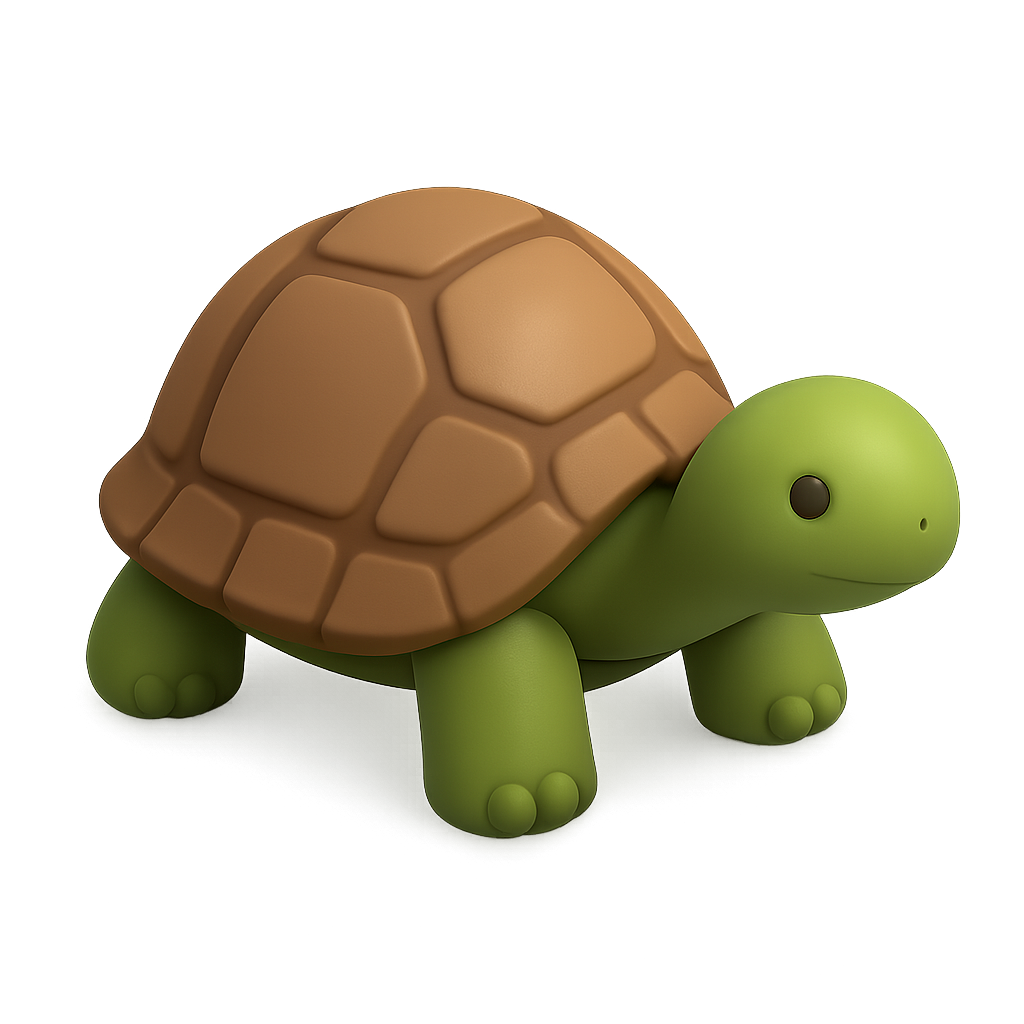 /Collection: /by davooda/Type: PNG/A stylized 3D tortoise icon featuring a smooth shell and a friendly expression. The tortoise is depicted in a three-quarter view with a transparent background, showcasing its volumetric details.