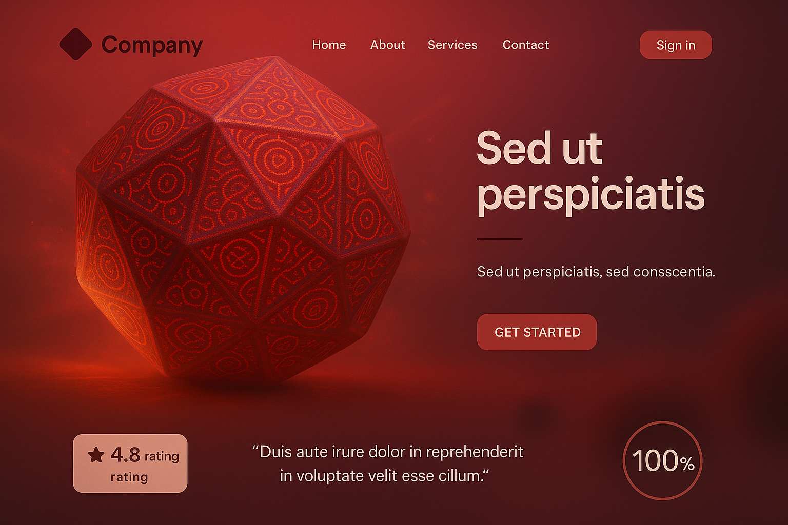 /Collection: /by davooda/Type: PNG/A sleek landing page featuring a geometric logo, action button, and rating display. The design includes a gradient background with a vibrant color scheme, emphasizing modern aesthetics.