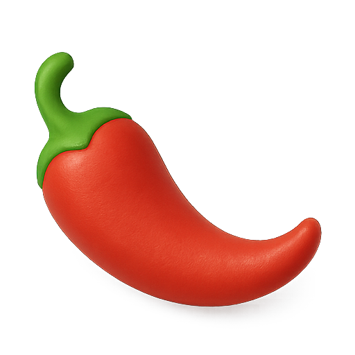 Vibrant 3D rendering of a red chili pepper with a green stem, showcasing a smooth and glossy finish. Ideal for culinary-themed graphics or food-related content.