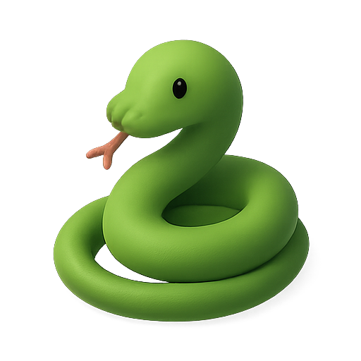 A playful and whimsical illustration of a green snake with a smooth, rounded design. Ideal for children's content or playful branding.