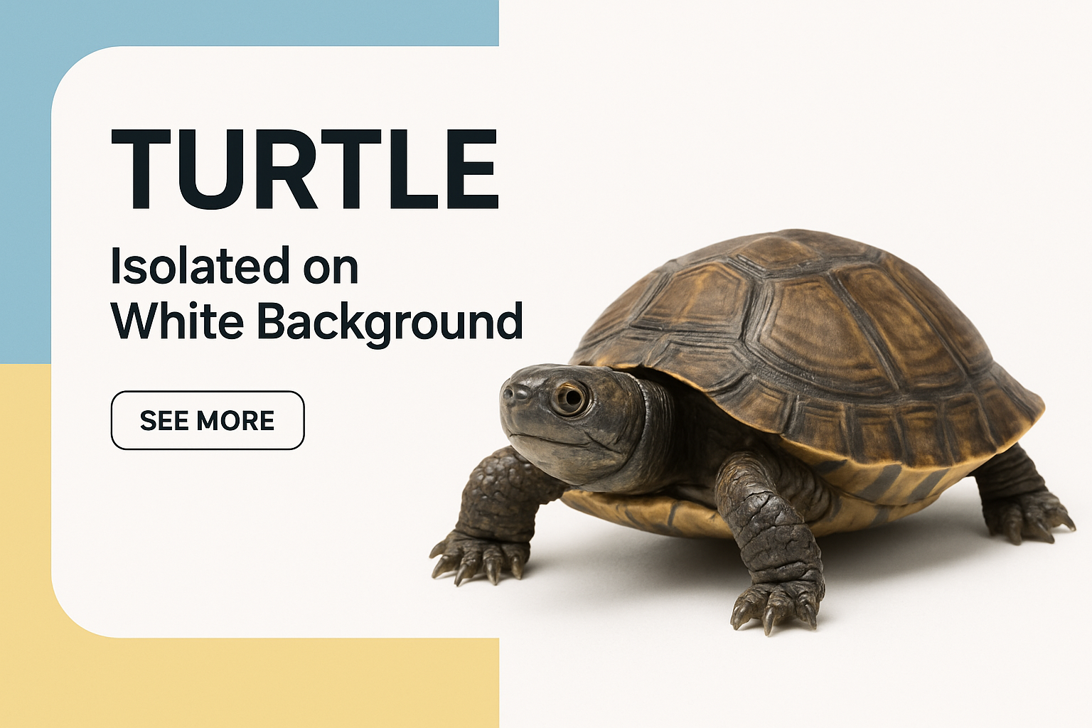 /Collection: /by davooda/Type: PNG/A realistic turtle isolated on a bright, geometric background featuring bold typography. The layout is modern and professional, emphasizing clarity and visual harmony.