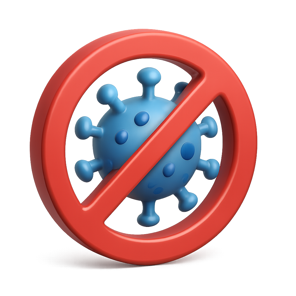 3D Virus Warning Icon with Prohibition Sign