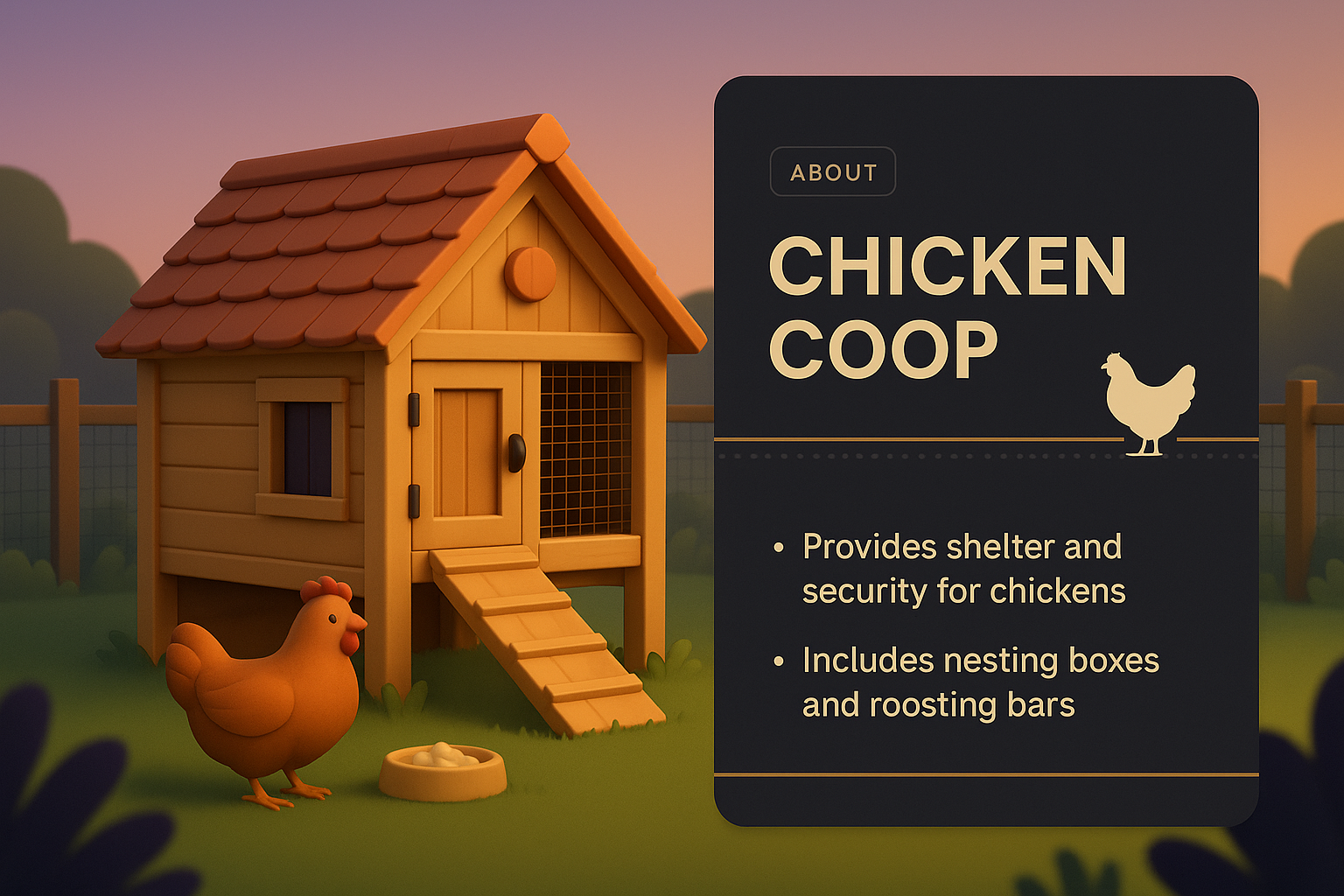 A charming illustration of a chicken coop featuring a hen, ideal for farm-themed projects or educational materials about poultry care.