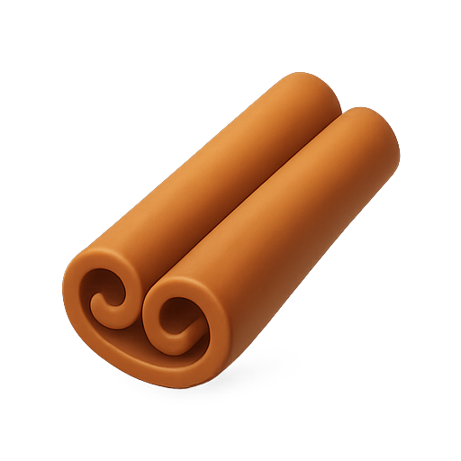 A detailed and stylized illustration of a cinnamon stick, showcasing its unique curled shape and warm brown color. Ideal for culinary and food-related designs.