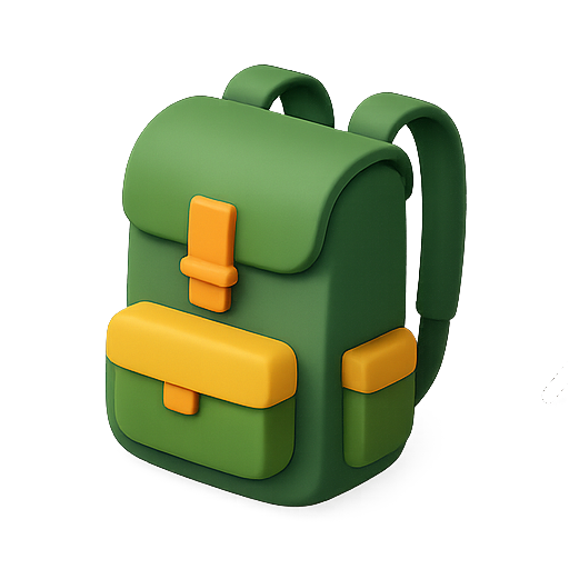 A modern 3D illustration of a green backpack featuring yellow accents, showcasing a playful and vibrant design ideal for educational or outdoor themes.