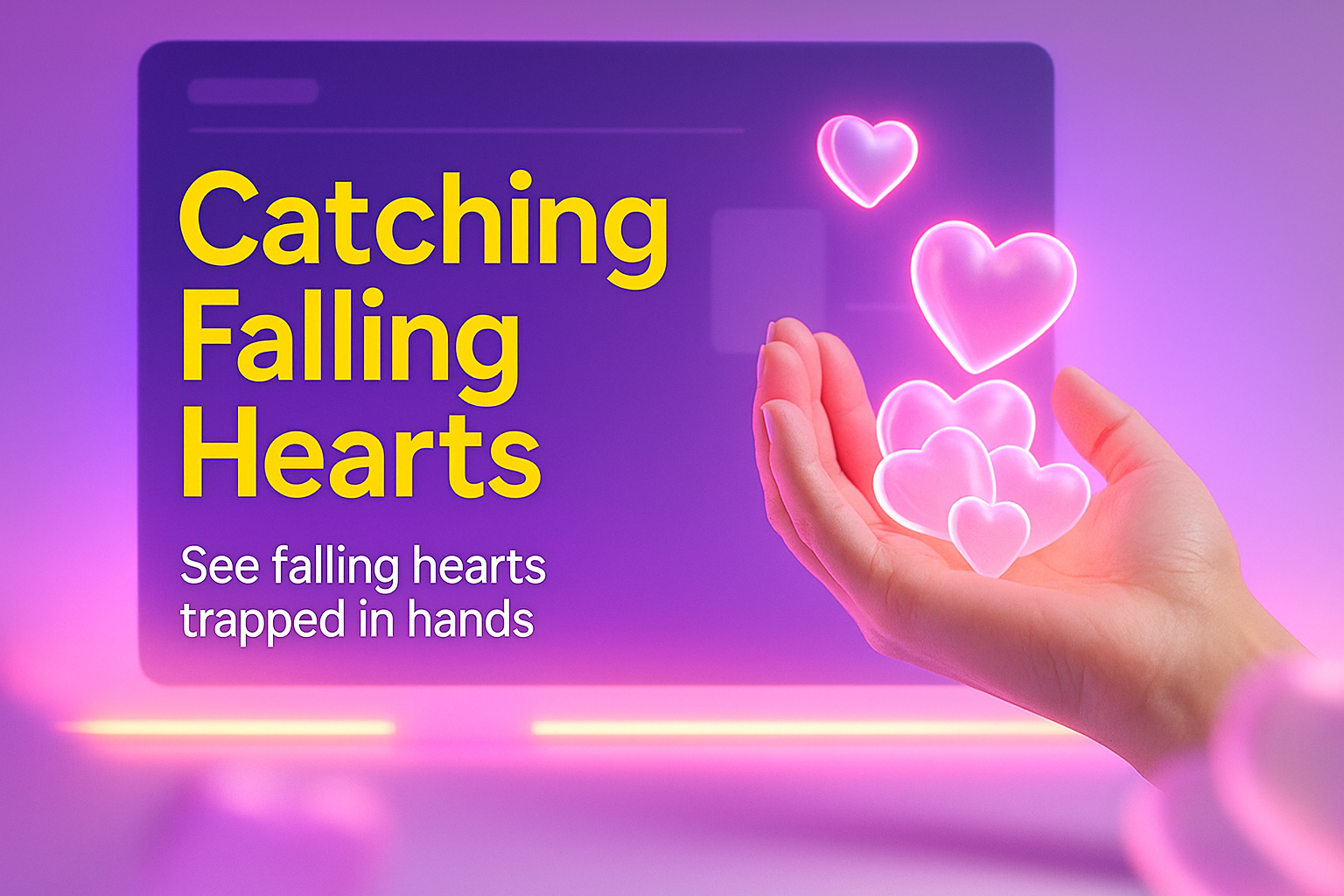 /Collection: /by davooda/Type: PNG/A playful digital illustration showcasing a hand catching floating hearts, with a vibrant color scheme and modern design. Ideal for social media or romantic-themed content.