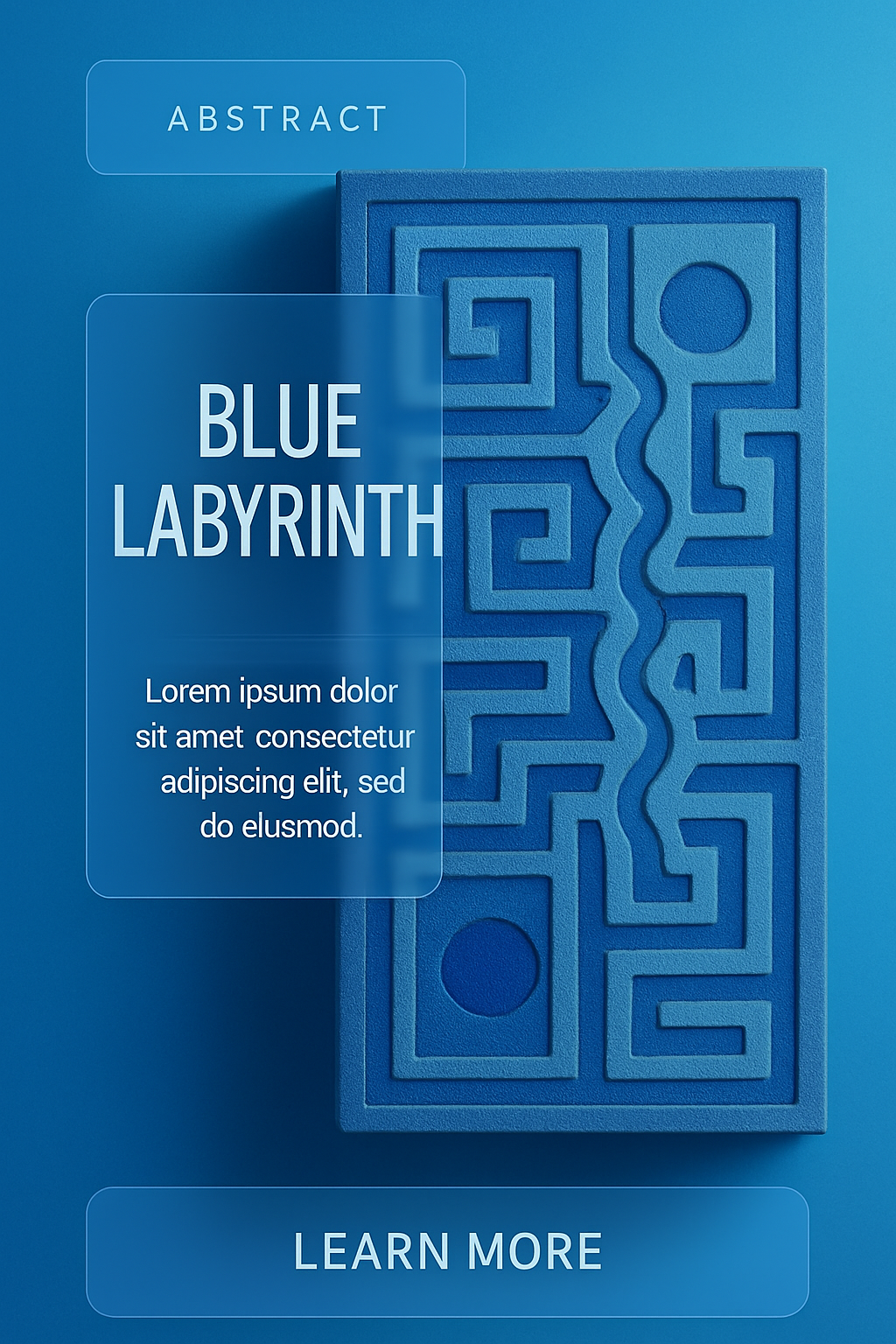 Abstract Blue Labyrinth Design with Glass Panels and Call-to-Action