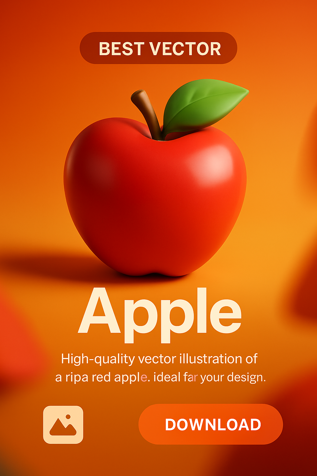 This image is a vector graphic of a shiny red apple with a green leaf, designed for use in digital projects. It features a smooth, 3D style against an orange background.