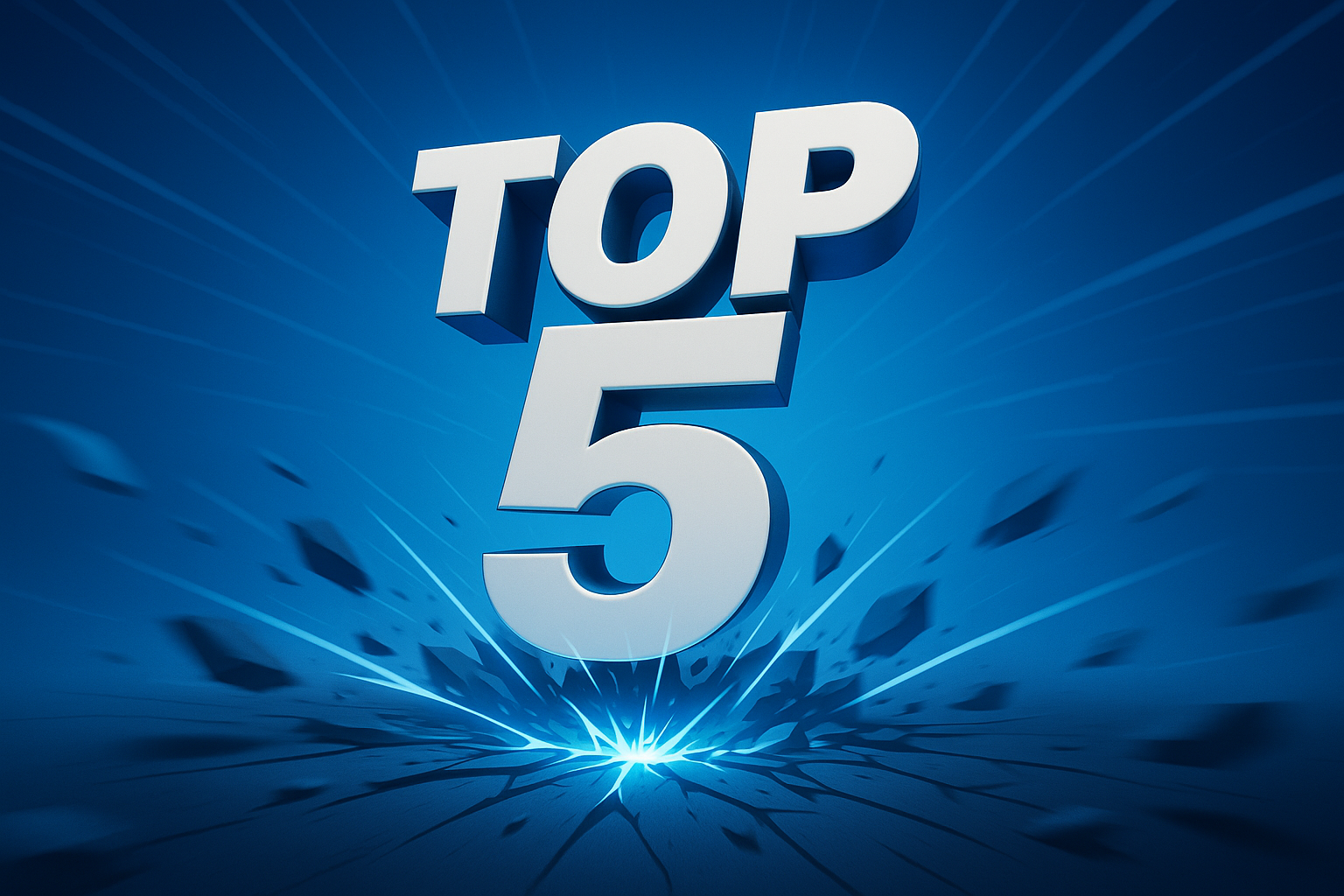 A striking graphic featuring bold 3D text 'TOP 5' against a dynamic blue background, ideal for video or article thumbnails showcasing rankings.